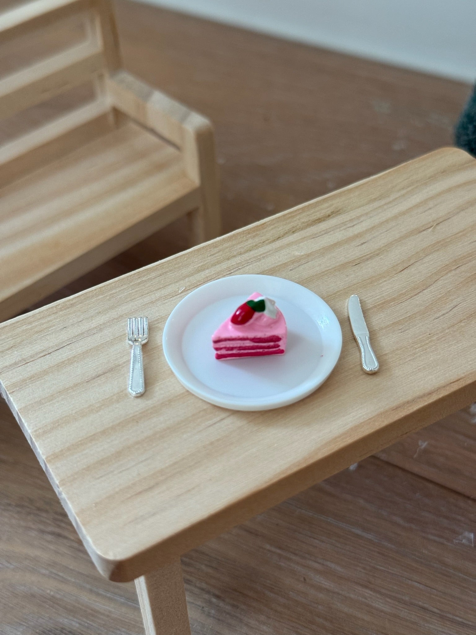 - Erdbeertortenstück mit Teller und Besteck