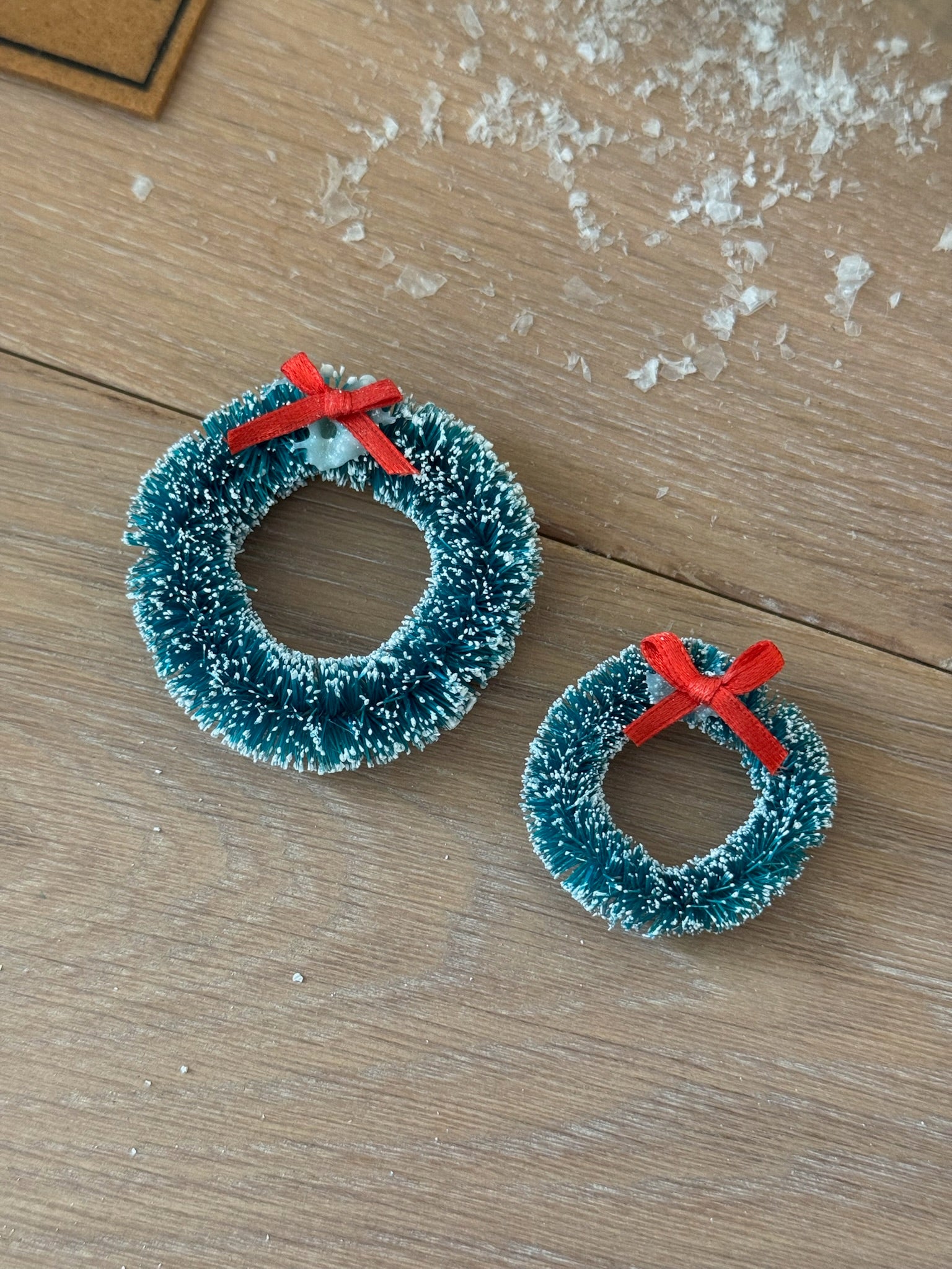 Lassen Sie einen Wichtel bei Ihnen einziehen! Der Brauch der Wichteltür stammt aus Skandinavien und blickt dort auf eine lange Tradition zurück. Hinter der Tür wohnt ein kleiner Wichtel, der in der Vorweihnachtszeit aus dem Zauberwald kommt und bei Familien zuhause einzieht, um sie bei den Weihnachtsvorbereitungen zu unterstützen. Doch Vorsicht, der Wichtel ist ein nachtaktives Wesen. Tagsüber schläft er und darf auf keinen Fall hinter seiner Wichteltür gestört werden. Der Wichtel baut sich sein Zuhause rund um seine Tür auf. Damit sofort eine gemütliche Stimmung aufkommt, dekoriert er seine Tür mit einem Türkranz. Die Türkränze gibt es im 2er-Set mit zwei verschiedenen Größen: 5 und 4 cm. Besonders weihnachtlich: die Kränze sind mit etwas Dekoschnee verziert.