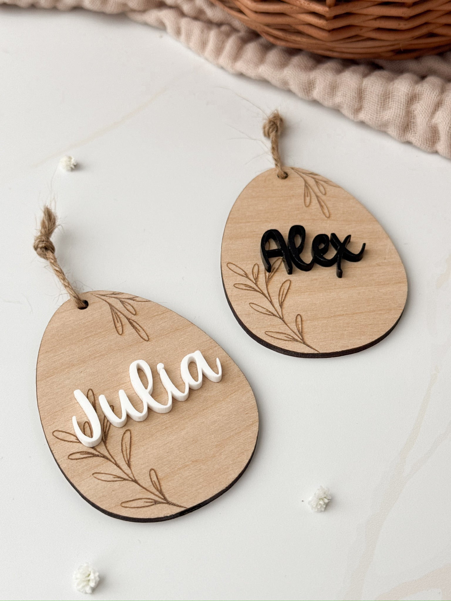Osterkörbchen mit personalisiertem Ei-Anhänger