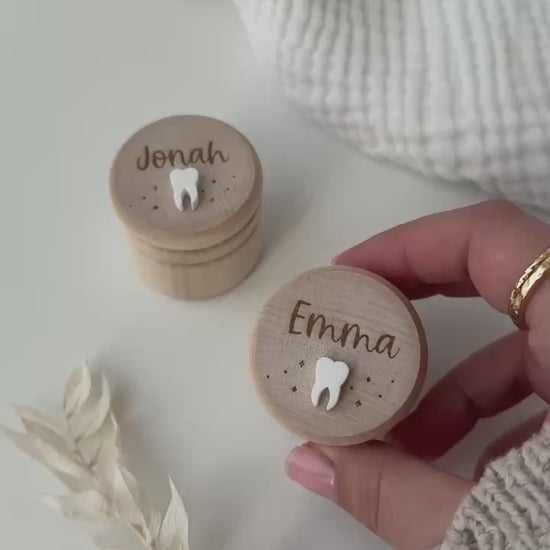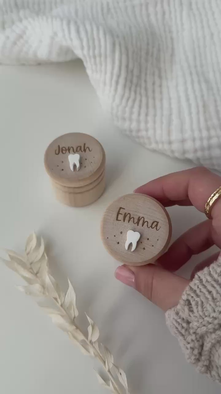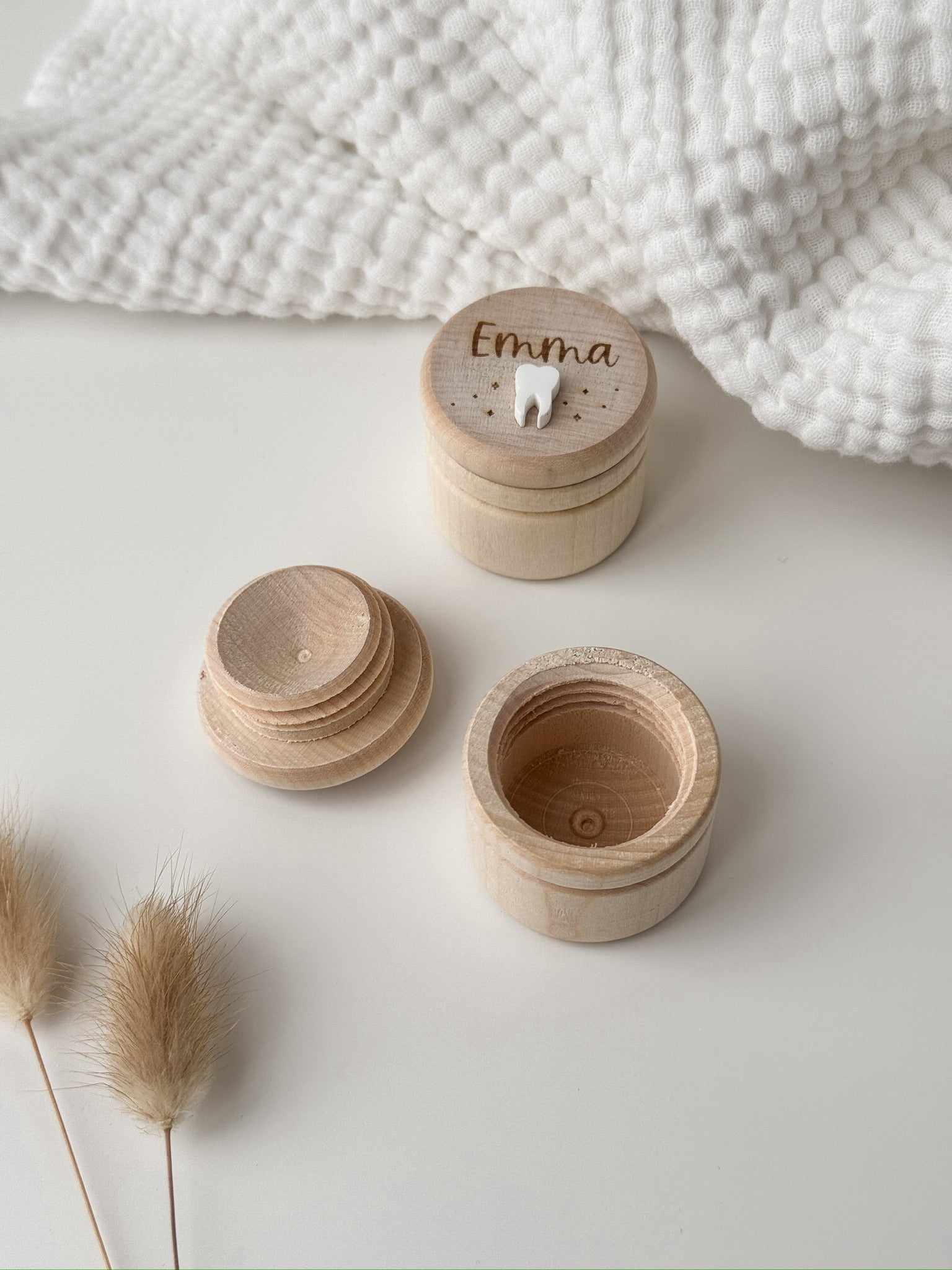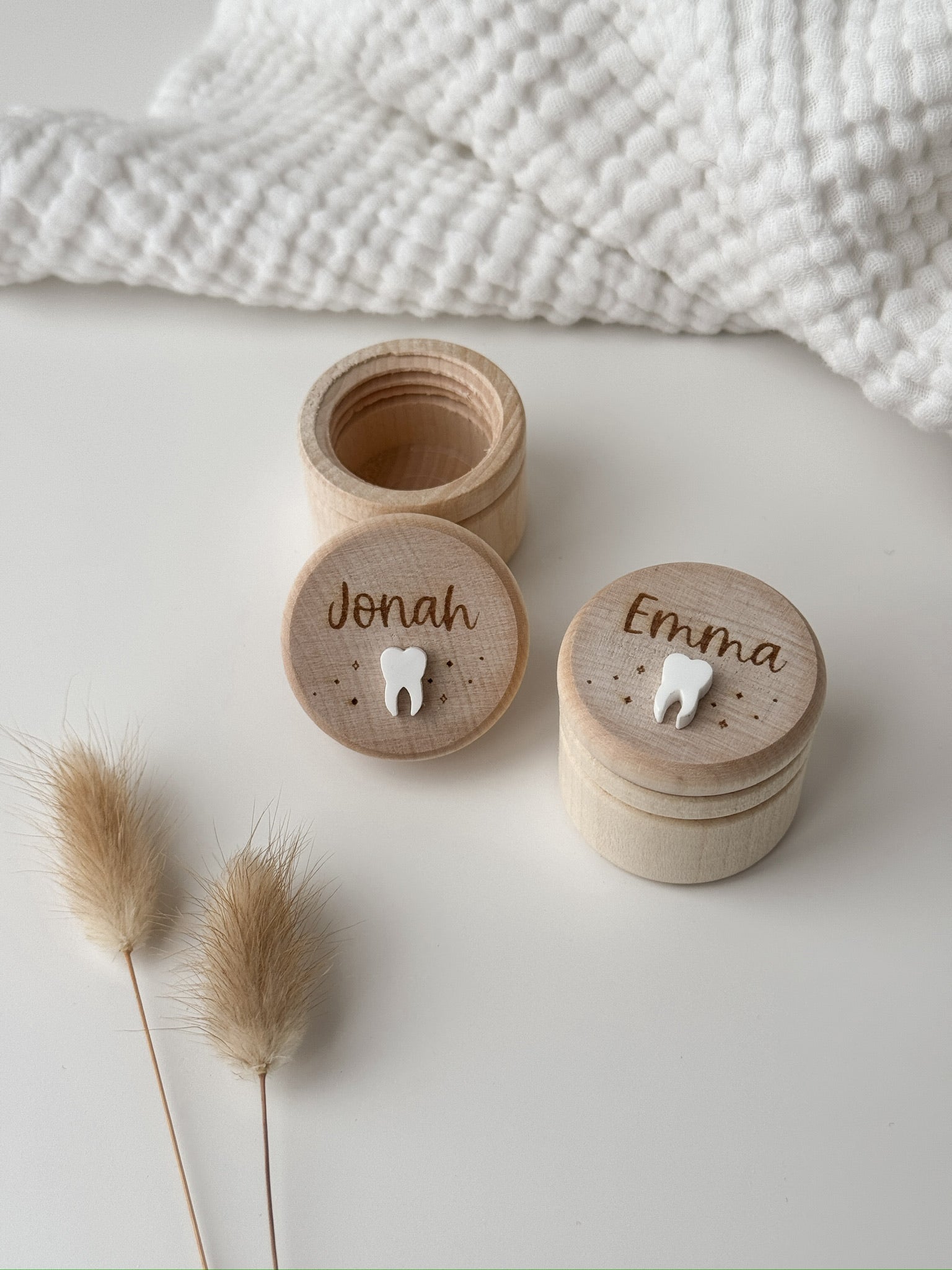 Entdecke unsere handgefertigte Milchzahndose, ein zauberhaftes Erinnerungsstück für deinen kleinen Schatz! Jede Dose wird individuell mit deinem Wunschnamen gestaltet und mit einem Zahnsymbol aus weißem Acryl verziert. Ideal auch als Geschenk zur Geburt, Taufe oder zum ersten Geburtstag!