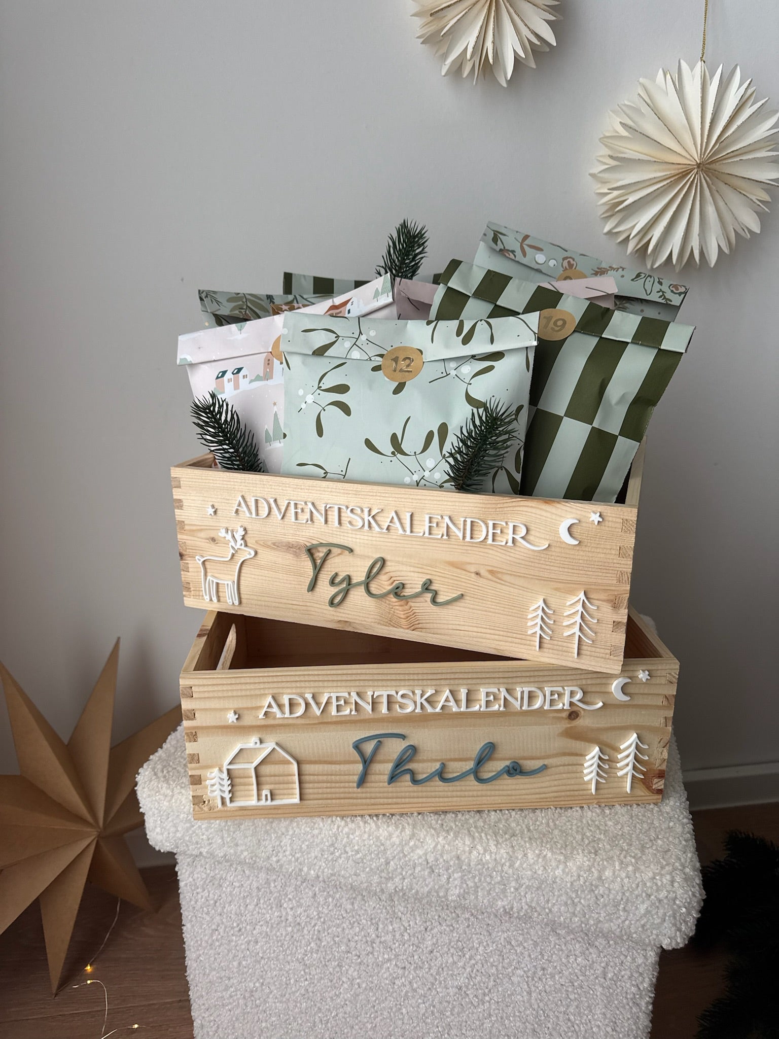 Mach die Adventszeit zu etwas ganz Besonderem mit unserer liebevoll gestalteten Adventskalender-Kiste aus Holz!