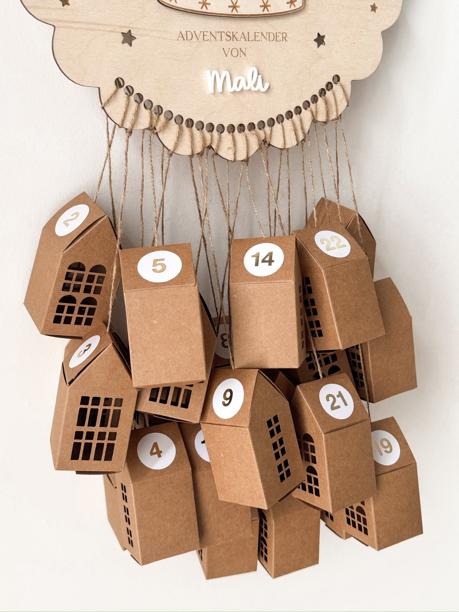 Personalisierter Adventskalender zum Befüllen | Adventskalender aus Holz | Personalisierter Adventskalender | Adventskalender mit Häuschen